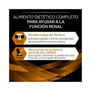 Alimento dietético completo en lata para perros adultos. Formulado para ayudar a la función renal en caso de insuficiencia renal crónica, contenido limitado de proteína, pero de alta calidad, y con contenido limitado de fósforo