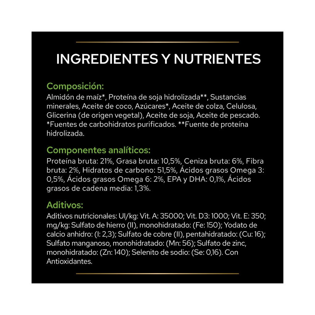 - Con ácidos grasos omega-3 para ayudar a potenciar el proceso antiinflamatorio natural.