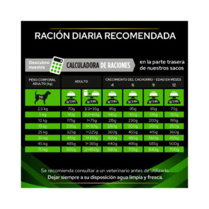 - Para perros de más de 70 kg: Por cada 5 kg adicionales de peso corporal, añadir 30g de alimento seco.