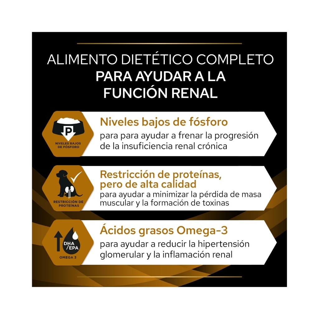 Una dieta clínica para ayudar a controlar la insuficiencia renal crónica y sus complicaciones en perros adultos y de edad avanzada.