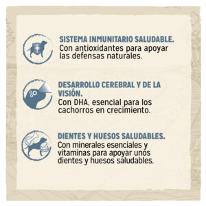 - Desarrollo cerebral y de la visión. Con dha, esencial para los cachorros en crecimiento.