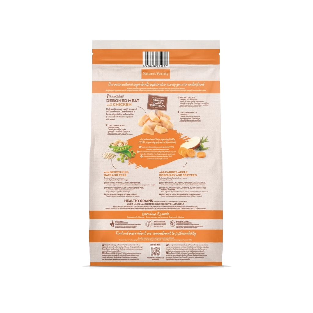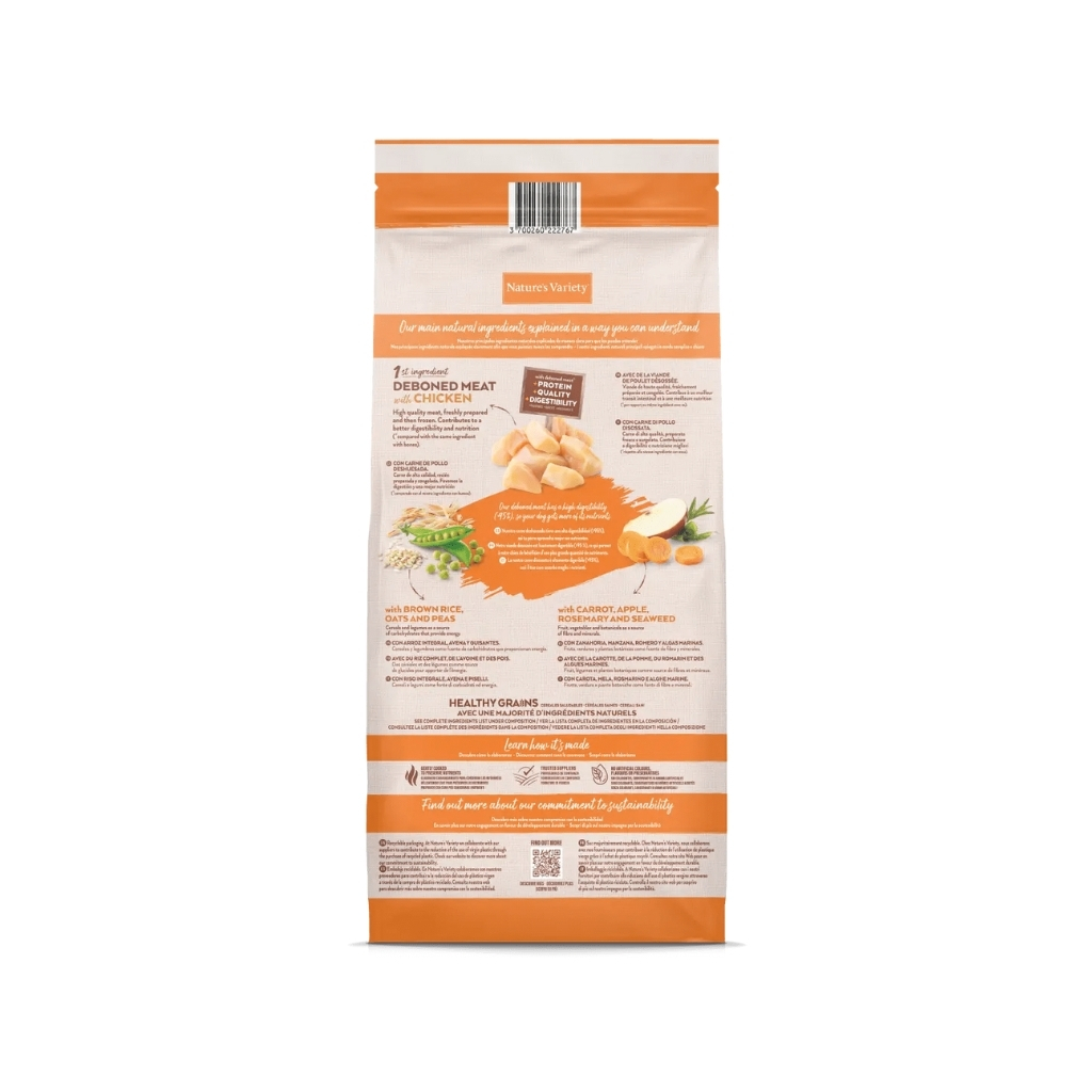 Alimento completo y equilibrado para perros adultos. Elaborado con carne de pollo deshuesada como principal ingrediente. Complementado con frutas y verduras cuidadosamente seleccionadas y cereales saludables.