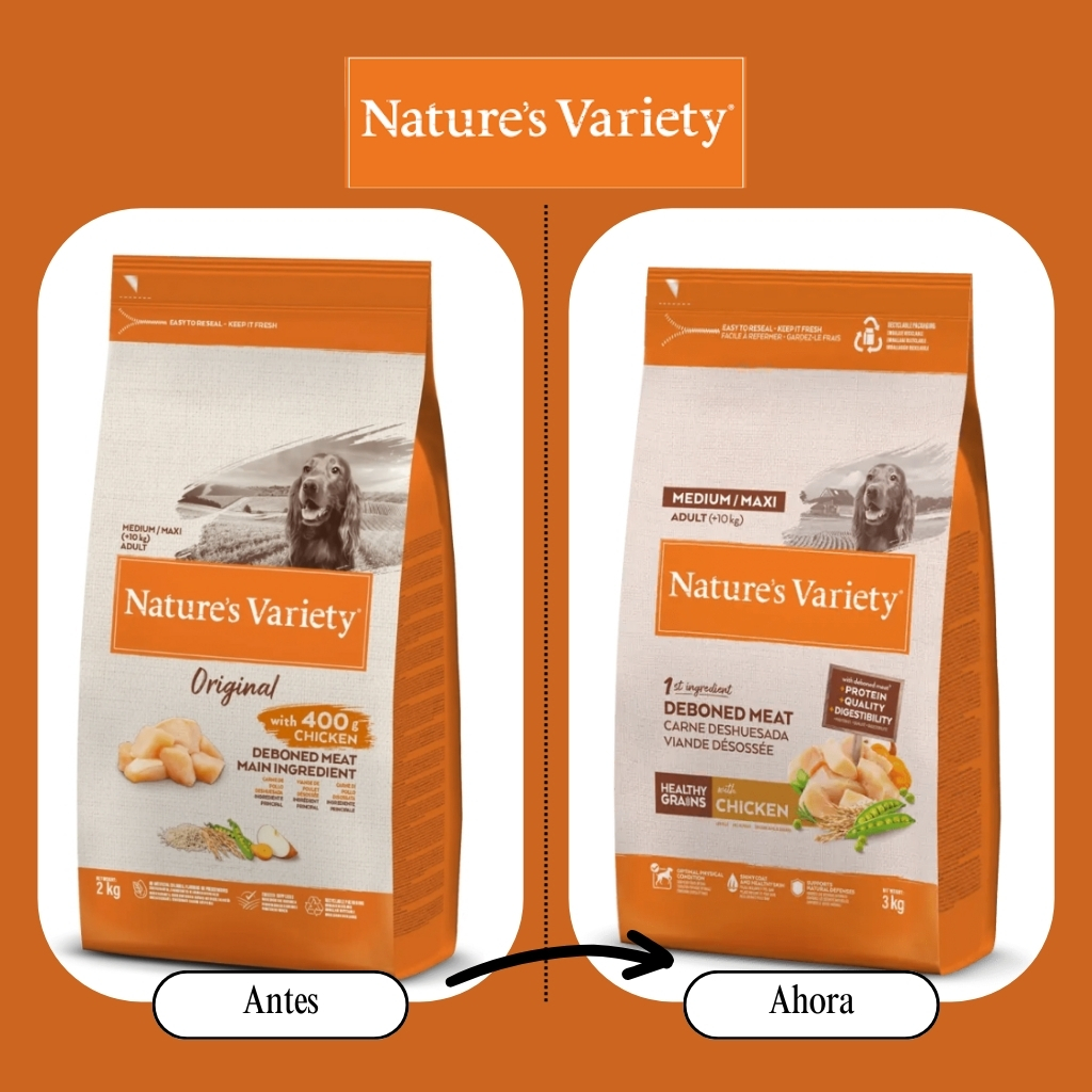- Con Arroz Integral, Avena y Guisantes: Cereales y legumbres como fuente de carbohidratos que proporcionan energía.