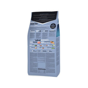 Pollo fresco* (mín. 25% antes de la extrusión), pavo fresco* (mín. 25% antes de la extrusión), pollo deshidratado (13%), guisantes enteros* (9%), raíces de mandioca* (7%), grasa avícola (preservada con antioxidantes naturales), pescado deshidratados (anchoveta, jurel y caballa), patata deshidratada* (3%), huevo deshidratado* (2%), cerdo deshidratado (2%), levadura de cerveza* (1%), manzana* (1%), vaina de algarroba* (1%), pulpa de remolacha, proteína hidrolizada de pollo, semilla de lino* (1%), aceite de pescado (preservado con antioxidantes naturales), alfalfa deshidratada*, sal gema*, fructo y manano oligosacáridos, glucosamina (1.000 mg/kg), algas marinas deshidratadas* (500 mg/kg), yucca schidigera, condroitín sulfato (200 mg/kg), arándanos* (100 mg/kg), tomillo* (80 mg/kg), flor de manzanilla* (80 mg/kg), hinojo* (80 mg/kg), equinácea* (80 mg/kg), té verde* (80 mg/kg). *Ingredientes naturales