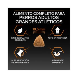 Alimento completo en pienso seco para perros adultos de razas grandes de constitución física atlética que apoya el mantenimiento cotidiano de la salud.
