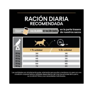 - Para ayudar a mantener a tu perro en una condición corporal ideal, ajusta las cantidades según el nivel de actividad de tu perro, condición física y necesidades individuales.