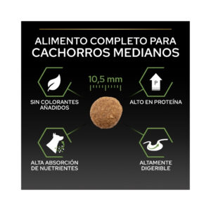 Alimento completo para cachorros de razas medianas, rico en pollo. También es adecuado para perras gestantes/lactantes. Contiene calostro, que se ha demostrado que apoya a la respuesta inmunitaria.