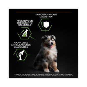 - Enriquecido con calostro, ayuda a reforzar la respuesta inmunitaria de los cachorros hasta un 50% más