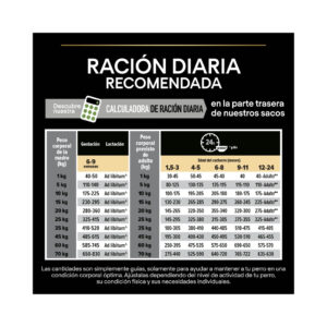 - Asegúrate de que tu cachorro y la madre mantienen una condición corporal magra ajustando las cantidades según el nivel de actividad de tu perro, condición física y necesidades individuales. Durante el destete, introduce el alimento sólido gradualmente.