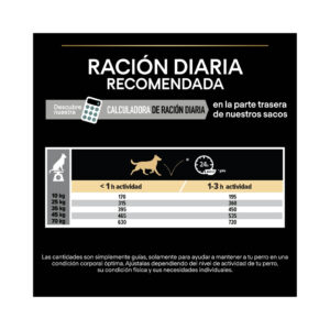 - Para ayudar a mantener a tu perro en una condición corporal ideal, ajusta las cantidades según el nivel de actividad de tu perro, condición física y necesidades individuales.