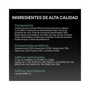 - Fácilmente digestible. Formulada con ingredientes específicos para la mejora del equilibrio de la microflora intestinal.