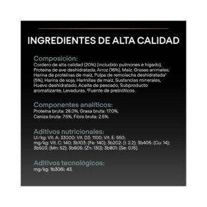 Small & Mini Adult Sensitive Digestion rico en Cordero es un alimento completo para perros adultos de razas pequeñas y miniatura con una digestión sensible. Fácilmente digestible y demostrado que mejora del equilibrio de la microflora intestinal.