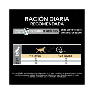 - Para ayudar a mantener a tu perro en una condición corporal ideal, ajusta las cantidades según el nivel de actividad de tu perro, condición física y necesidades individuales.