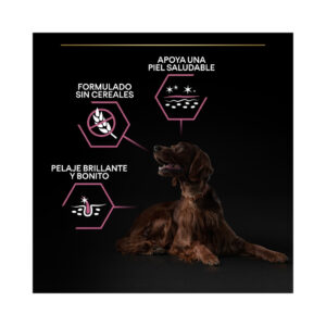 - Fuentes de proteína seleccionadas para perros sensibles, formulado sin trigo (Producido en instalaciones en las que se manipulan cereales)