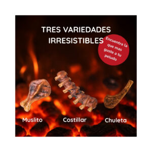 - Textura y forma que encantarán: Las chuletas tienen una forma atractiva y una textura que favorece la higiene bucal: al masticar, tu perro contribuye a eliminar placa y mantener las encías saludables.