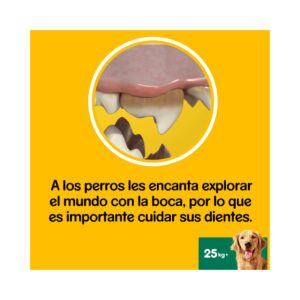 - Snack dental para perros grandes que favorece la higiene oral y contribuye a mejorar el aliento del perro.