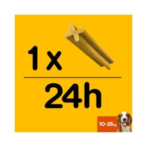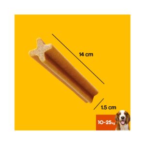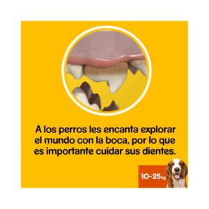 - Es un snack masticable adecuado sólo para perros entre 10 y 25 kg.