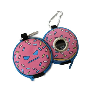 Bolsito en forma de Donuts Dispensador de Bolsas (8 cm) para engancharlo a tu correa y llevar siempre las bolsas higiénicas, con 4 estampados diferentes, además incluye 1 rollo de 15 bolsas en su interior ¡elige el que mas te guste!