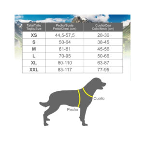 - XS; Pecho: 44,5-57,5 cm // Cuello: 28-36 cm.