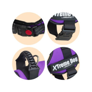 - Arnés para perros extra resistente, ergonómico y ajustable en cuello y barriga mediante velcro y cierre de plástico.
