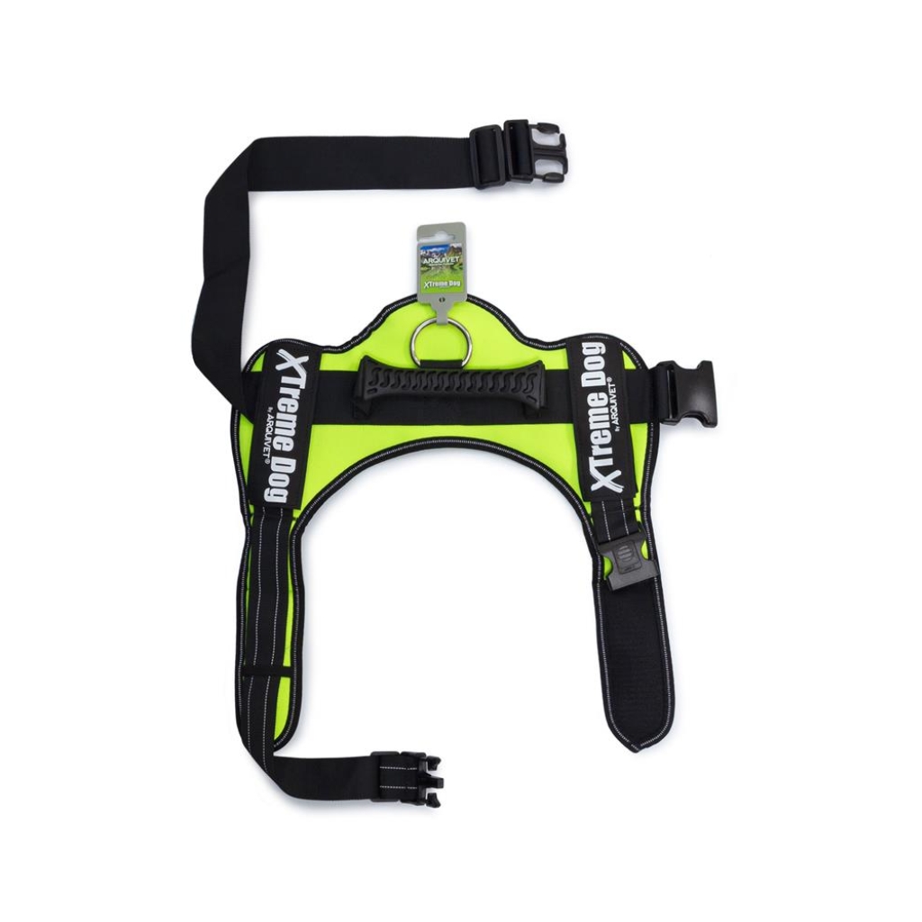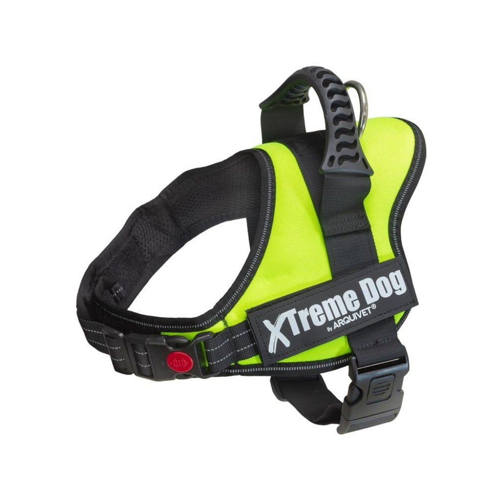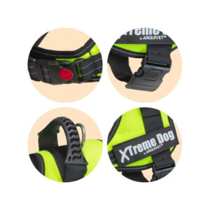- Arnés para perros extra resistente, ergonómico y ajustable en cuello y barriga mediante velcro y cierre de plástico.
