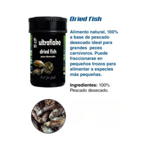 Tipo: alimento natural desecado (peces enteros de pequeño tamaño).