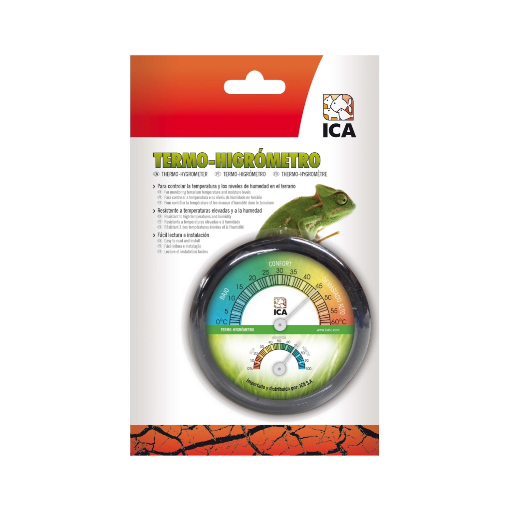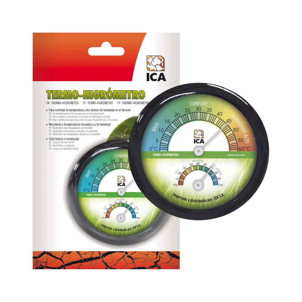 Controla la temperatura y la humedad de tu terrario con este termohigrómetro de fácil lectura e instalación. Es muy resistente a la humedad y a las altas temperaturas.