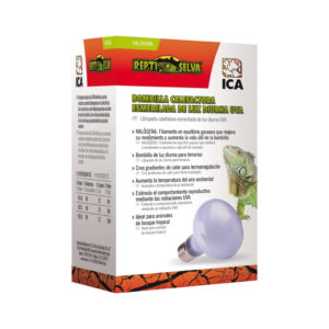 **Bombilla de luz diurna para terrarios – Emite rayos UVA, y luz visible – Crea gradientes de calor para termorregulación. – Superficie esmerilada para proteger los ojos – Radiaciones UVA – Halógena – Casquillo E27**