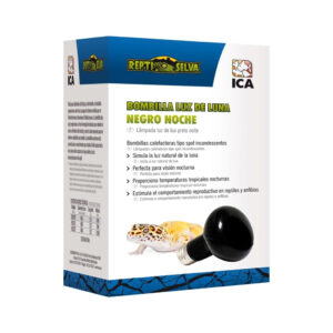 Bombilla calefactora de luz negra que imita la luz de luna, ideal para proporcional temperaturas tropicales durante las horas nocturnas.