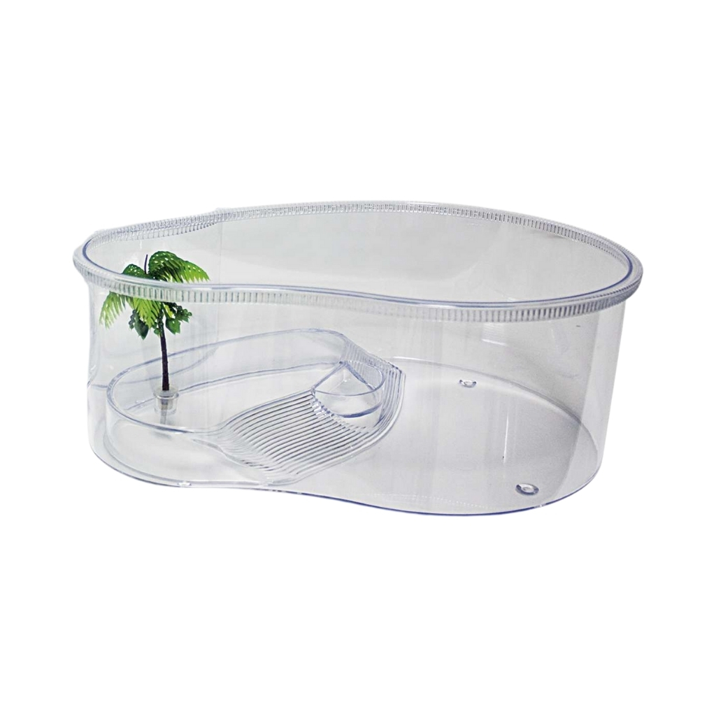 - Esta tortuguera es muy alta y tiene una gran isla a la que se puede acceder desde su cómoda rampa de acceso.