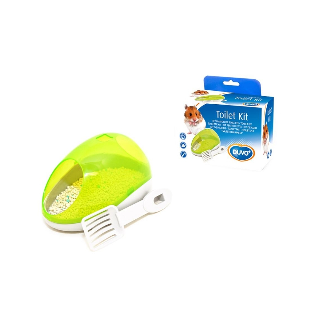 Los hámsters suelen hacer sus necesidades en un lugar fijo. Una buena manera de entrenar a su hámster es colocar en la jaula un rincón de aseo específico relleno con arena. El kit de aseo para hámsters es fácil de limpiar e incluye una pala.