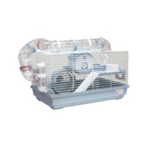 Preciosa jaula con múltiples accesorios ideal para hámster, fabricada con materiales de alta calidad, con agarres de sujeción para una mayor seguridad y fácil limpieza y desinfección.