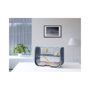 - El Geneva es fácil de instalar y limpiar. La jaula no sólo está equipada con una puerta frontal grande para facilitar el acceso, sino que para fines de limpieza, la parte superior de la jaula se puede cerrar del tanque de plástico.