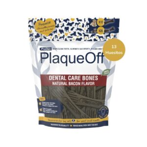 Los Dental Care Bones son los únicos masticables del mercado que contienen el ingrediente de algas A.N ProDen, 100 % natural y clínicamente probado. Los Dental Care Bones ayudan a superar los problemas bucodentales con una doble acción: A.N ProDen actúa a través del organismo del animal, controlando la formación de la placa bacteriana, disolviendo el sarro existente y previniendo su formación. Su exclusiva forma y la acción abrasiva del hueso ayudan a eliminar la placa y el sarro, lo que contribuye a refrescar el aliento. También contiene ácidos grasos omega 3 y 6 y antioxidantes que favorecen la salud inmunitaria. El sabor beicon es uno de nuestros sabores más populares y es la recompensa perfecta para que el perro disfrute.