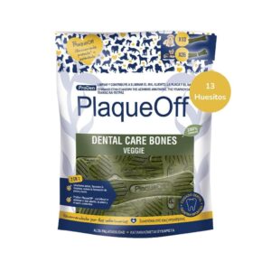 Las bolsas de Dental Care Bones contienen 13 huesos cada una, y la dosis para perros de hasta 25 kg es de un hueso diario.