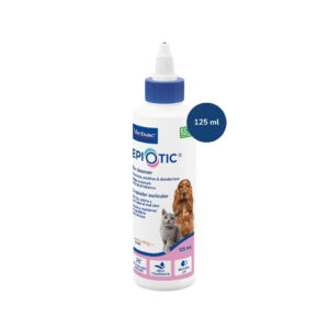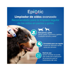 Epiotic es un limpiador de oídos a base de agua micelar que se puede utilizar en perros, gatos, cachorros y gatitos.