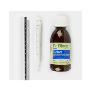 - Dr. Dingo Relax es un innovador y apetitoso alimento complementario para perros en forma líquida para aplicar directamente en boca mediante una cómoda jeringuilla dosificadora que ayudará a tu perro a estar calmado y tranquilo frente a situaciones de estrés puntual, sin efecto de somnolencia posterior, gracias a la combinación de ingredientes vegetales como el Té verde -fuente de L-Teanina-, Griffonia-fuente de Triptófano, precursor de la serotonina-, Melisa y Espino blanco.