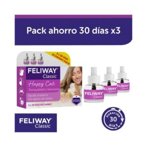 - Feliway Classic Difusor libera un mensaje de felicidad, similar a la feromona facial que producen los gatos de forma natural.
