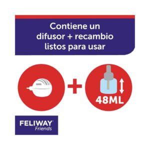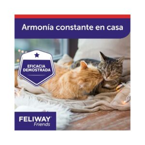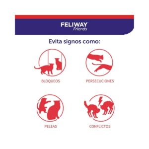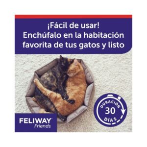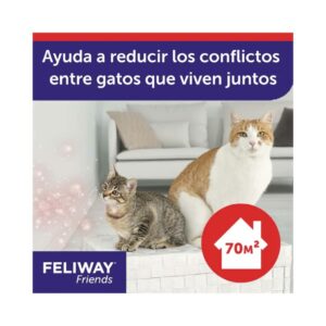 - Gracias a la Feromona del Apaciguamiento Felino, Feliway Friends ayuda a reducir los conflictos entre los gatos que viven juntos.
